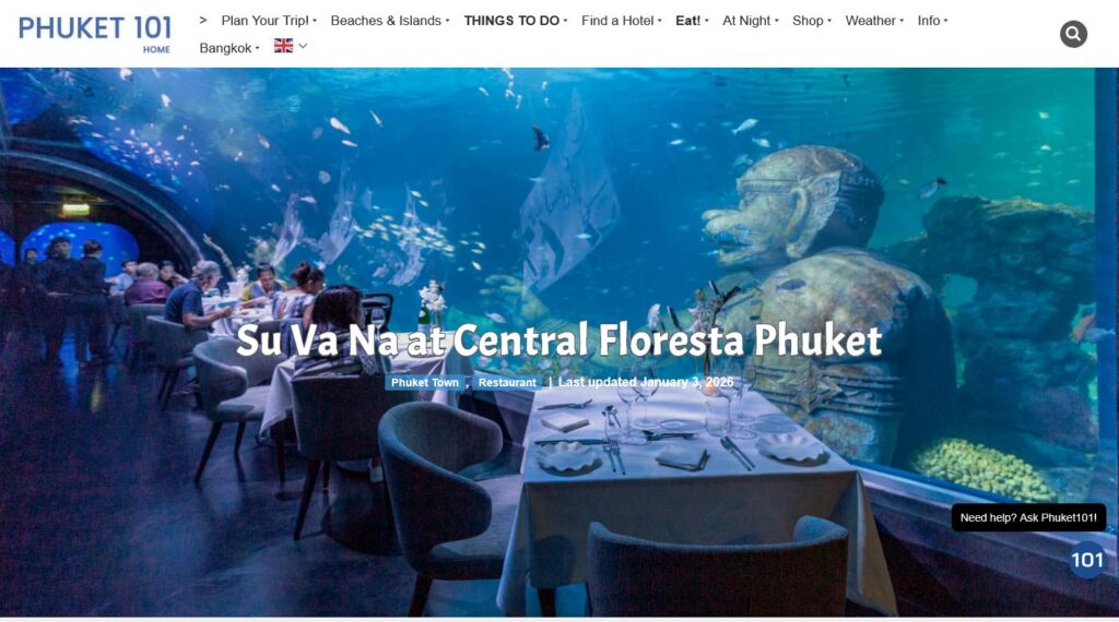 Travelers Today highlights Su Va Na Phuket as a unique, premium underwater-style dining experience inside Aquaria Phuket, combining a marine aquarium setting with refined tasting menus that blend contemporary European techniques and Thai ingredients, plus VIP tunnel seating, lounge experiences and a mermaid show.
